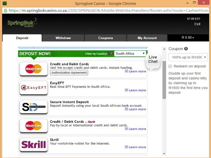 Profitez d'un accès complet et rapide à tous les jeux de casino en téléchargeant le logiciel sur Springbok. Choisissez le mode Fun pour vous amuser et le mode Argent réel lorsque vous êtes prêt à effectuer un dépôt.